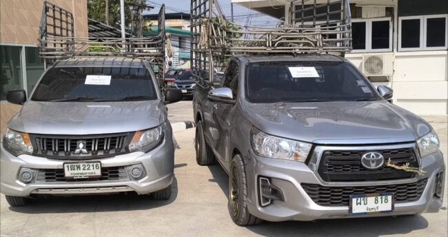 3..รถยนต์กะบะยี่ห้อ โตโยต้า รุ่นวีโว่ ตอนเดียว สี-เทา หมายเลขทะเบียน ผข 818 จันทบุรี 4.รถยนต์กะบะยี่มิตซูบิชิ รุ่นไททัน ตอนเดียว สีเทา หมายเลขทะเบียน 1ฒ 2216 กรุงเทพมหานคร รวมรถยนต์กะบะ 3 คัน 5.วิทยุสื่อสาร สีดำ ยี่ห้อ italk จำนวน 3 เครื่อง 6.เครื่องติดตามสัญญาณ GPS ยี่ห้อ Fashion พร้อมซิมจำนวน 3 เครื่อง 7 .โทรศัพย์ มือถือรวมจำนวน 5 เครื่อง