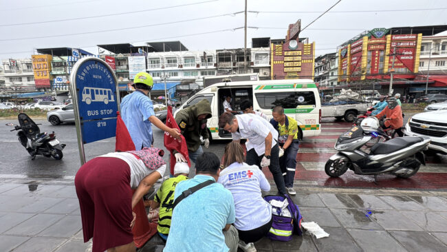 หนุ่มเมียนมาร์ ขี่มอไซค์ หักหลบนักเรียนข้ามทางม้าลาย ล้มหัวฟาดขอบฟุตบาท เจ็บหนัก