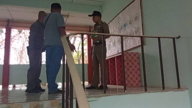 หลังจากนั้น พ.ต.ท.จรูญ ตรงกลาง พนักงานสอบสวน สภ.เขาบางแกรก อ.หนองฉาง จ.อุทัยธานี ได้เข้าตรวจสอบอาคารชั้น 3 ภายในโรงเรียน เพื่อหาจุดที่ครูดังกล่าวนั้นก่อเหตุถ่ายคลิป เบื้องต้นศูนย์การเรียนรู้คณิตศาสตร์ ซึ้งเป็นห้องที่ ครูดังกล่าวทำพฤติกรรมไม่เหมาะสม ที่บริเวณบันใด ทางขึ้น ตรงกับภาพคลิบที่ลงในโชเชี่ยว จึงถ่ายรูปไว้เป็นหลักฐาน
