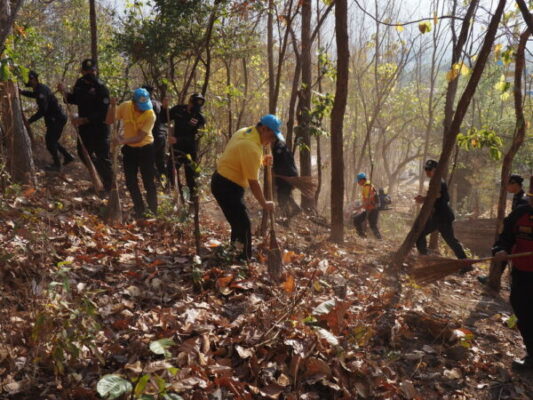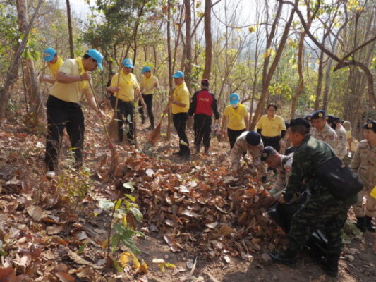 และส่งเสริมการมีส่วนร่วมของทุกภาคส่วนในการเฝ้าระวัง ป้องกัน และแก้ไขปัญหา ไฟป่าหมอกควันเชิงสร้างสรรค์ โดยการนำเศษวัสดุที่เป็นเชื้อเพลิงในป่ากลับมาใช้ประโยชน์ อย่างยั่งยืน และจัดทำแนวกันไฟเพื่อควบคุมการลุกลามของไฟที่จะเกิดขึ้นในพื้นที่ ทั้งนี้ผู้เข้าร่วมกิจกรรมในวันนี้ประกอบด้วย กำลังเจ้าหน้าที่ภาคสนาม กรมป่าไม้ กรมอุทยาน แห่งชาติ สัตว์ป่า และพันธุ์พืช ข้าราชการพลเรือน ทหาร ตำรวจ เจ้าหน้าที่ปกครอง นักเรียน นักศึกษา ผู้นำชุมชน และเครือข่ายจิตอาสาภาคประชาชน รวม 560 นาย