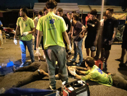 จากการสอบถาม นายเบียร์ อายุ 29 ปี ผู้เห็นเหตุการณ์ เล่าว่า ตนนั่งเล่นอยู่ภายในร้าน ได้ยินเสียงรถชนกัน จึงเดินออกมาดู ก็เห็นรถตำรวจขับรถไล่ตามรถคันสีดำที่ขับย้อนศรไปทางนิคม พอหันมาอีกข้างก็เห็นคนเจ็บนอนนิ่งอยู่กับพื้นถนน สภาพรถพังขับเยิน ตนจึงเข้าไปให้การช่วยเหลือ พร้อมโทรแจ้งมูลนิธิ
