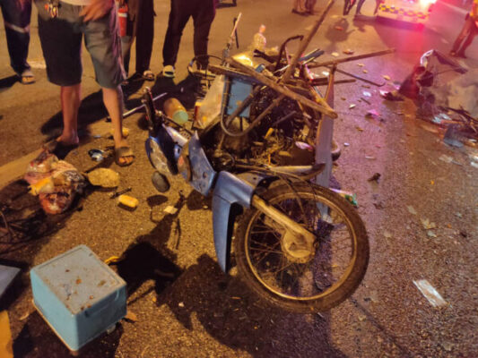 ได้มี รถยนต์อเนกประสงค์ ยี่ห้อ โตโยต้า ฟอร์จูนเนอร์ สีดำ ทะเบียน 5 กล 8879 กรุงเทพมหานคร ขับฝ่าจุดตรวจ เลี้ยวเข้าถนนแพรกษา เมื่อมาถึงบริเวณจุดกลับรถปั๊มน้ำมันบางจาก รถยนต์คันดังกล่าวได้ขับย้อนศร มาจนถึงบริเวณหน้าปั้มน้ำมัน ปตท. ได้เฉี่ยวชนกับ รถจักยานยนต์พ่วงข้าง ยี่ห้อ ฮอนด้า เวฟ สีน้ำเงิน ทะเบียน บลร 620 กรุงเทพมหานคร ทำให้ผู้ขับขี่ ทราบชื่อ นายสุธานี วิญญุพันธ์ อายุ 40 ปี ได้รับบาดเจ็บ หลังจากนั้นรถยนต์คันดังกล่าวได้ขับย้อนศรต่อไป และเข้าซอยนิคมอุตสาหกรรมบางปู(ท้ายนิคม) เจ้าหน้าที่ตำรวจจึงได้ติดตามจนสกัดจับได้บริเวณ นิคมอุตสาหกรรมบางปู ปากซอย 5B หมู่ 4 ต.แพรกษา อ.เมือง จ.สมุทรปราการ เบื้องต้นพบผู้ขับชื่อ นายสาน มิน อู อายุ 24 ปี ชาวเมียนมา เเละพบแรงงานต่างด้าวภายในรถ รวม 12 คน