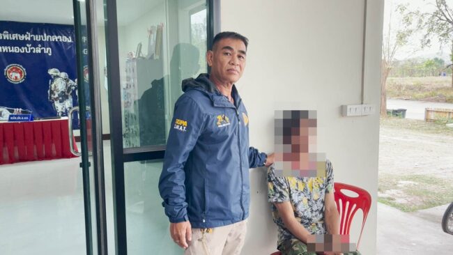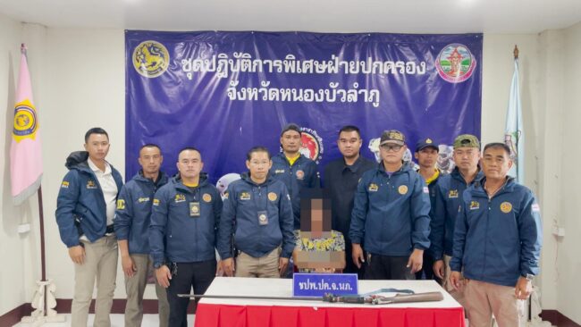 ให้จับกุมพ่อที่ผู้ก่อเหตุให้ด้วย จากนั้นนายประสิทธิ์ มหาวงค์ หัวหน้าชุดปฏิบัติการพิเศษฝ่ายปกครองจังหวัดหนองบัวลำภู พร้อมด้วยสมาชิกกองอาสารักษาดินแดน (อส.) เดินทางเข้าพื้นที่ พอไปถึงพบนายแสบ ( นามสมมุติ ) อายุ 48 ปี อยู่ที่ ต.บ้านขาม อ.เมือง จ.หนองบัวลำภู นั่งอยู่หน้าบ้าน เบื้องต้นตรวจปัสสาวะพบว่าเป็นสีม่วง ตรวจค้นในบ้านพบปืนยาวไทยประดิษฐ์ 1 กระบอก จึงได้นำตัวมาสอบปากคำ และรับว่าซื้อยาบ้ามาจากวัยรุ่นไม่ทราบชื่อ ซื้อมาเสพ 2 เม็ดในราคาเม็ดละ 50 บาท ส่วนปืนที่พบเป็นของตนเองจริง