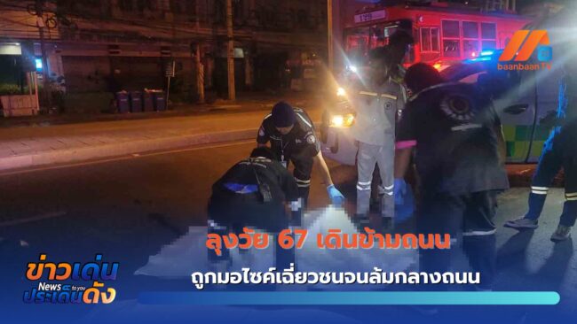 สมุทรปราการ-ลุงวัย 67 เดินข้ามถนนถูกมอไซค์เฉี่ยวชนจนล้มกลางถนน