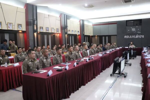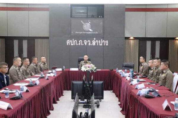 เมื่อเวลา 10.00 น.วัน ที่ 11 มี.ค.2568 ที่ จ.ลำปาง ผู้สื่อข่าวรายงานว่า ที่ ห้องประชุม 5 ตำรวจภูธรจังหวัดลำปาง พล.ต.ต.ภูมิปัญญ์ญา นวตระกูลพิสุทธิ์ ผบก.ภ.จว.ลำปาง พ.ต.อ.กฤษดา พันธ์เกษม พ.ต.อ.สังเวียน อินตากูล พ.ต.อ.ชูวิทย์ กองแก้วพ.ต.อ.ศักดิ์ศรี ยะปาละ พ.ต.อ.อัครินทร์ กาสา พ.ต.อ.คมสันต์ สอาดล้วน รอง ผบก.ภ.จว.ลำปาง พร้อมด้วย ผกก.สภ.ภ.จว.ลำปาง ผกก.ฝอ.ฯ ผกก.กก.สส.ฯ ผกก.(สอบสวน) กลุ่มงานสอบสวนฯ รอง ผกก.ฝอ.ฯ สว.ฝอ.กก.ภ.จว.ลำปาง