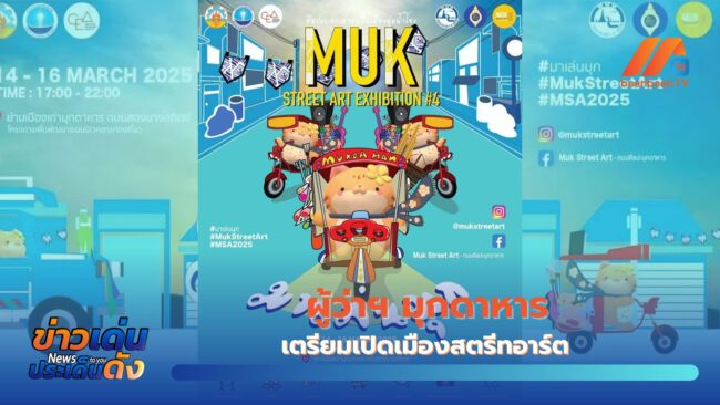 เมื่อวันที่ 11 มีนาคม 2568​ นายวรญาณ บุญณราช ผู้ว่าราชการจังหวัดมุกดาหาร เปิดเผยว่า จังหวัดมุกดาหาร เตรียมจัดกิจกรรมใหญ่ส่งเสริมการท่องเที่ยว Mukdahan Street Art ศิลปะบอกเล่าชนพื้นเมืองลุ่มน้ำโขง ครั้งที่ 4 ขึ้นในวันที่ 14-16 มีนาคมนี้ ณ บริเวณย่านเมืองเก่า ถ.สองนางสถิตย์ เทศบาลเมืองมุกดาหาร อ.เมืองมุกดาหาร จ.มุกดาหาร ซึ่งกิจกรรมภายในงานจะมีการจัดนิทรรศการงานศิลปกรรมโดยศิลปินนักวาดภาพ การแข่งขันนักเล่าเรื่อง การเดินแบบผ้าพื้นเมือง การแสดงดนตรี การจัดแสดงสินค้า การสาธิตงานศิลปะและเครื่องปั้นดินเผา เพื่อประชาสัมพันธ์ส่งเสริมและพัฒนาการตลาดท่องเที่ยวซึ่งจะนำมาซึ่งรายได้และจำนวนนักท่องเที่ยว ก่อให้เกิดการสร้างงาน สร้างรายได้ในท้องถิ่นและชุมชน ทั้งในระยะสั้นและในระยะยาวต่อไป