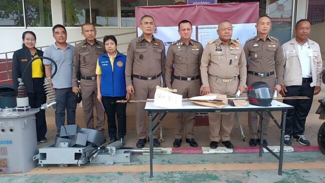 เมื่อเวลา 16.00น.วันที่11มีค.68สภ.ระเบาะไผ่ นายวีระพันธ์ ดีอ่อน ผู้ว่าราชการจังหวัดปราจีนบุรี นางสาวจุฑามาศ บัวเผื่อน นายอำเภอศรีมหาโพธิ พล.ต.ต.เกียรติศักดิ์ สระทองออย ผบก.ภจว.ปราจีนบุรี พ.ต.อ.คงศักดิ์ บุญสื่อสุวรรณ รอง ผบก.ภจว.ปราจีนบุรีพ.ต.อ.สมพร เทพเสน ผกก.สภ.ระเบาะไผ่ พร้อมชุดสืบสวนฯ ร่วมแถลงข่าว สืบเนื่องจากเมื่อวันที่ 6 มีค.68 สภ.ระเบาะไผ่ได้รับแจ้งจากผู้นำชุมชนและชาวบ้าน บ้านหว้าเอน ม.8 ต.ศรีมหาโพธิ จ.ปราจีนบุรี ว่าไฟฟ้าส่งสว่างถนนภายในหมู่บ้านดับโดยไม่ทราบสาเหตุ จึงแจ้งเจ้าหน้าที่ตำรวจร่วมกันออกตรวจสอบ