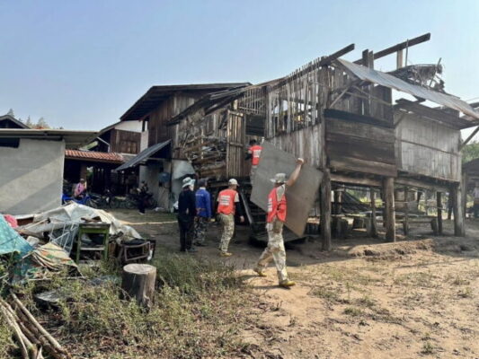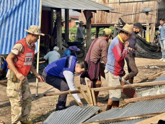 ต่อมาเวลา 09.00น.ว่าที่ร้อยตรี วิทยา โปทาศรี นายอำเภอแม่ลาน้อย พร้อมปลัดอำเภอฝ่ายความมั่นคง กำลังพล อส.นายอาคม จำลองศักดิ์ นายกเทศมนตรีเทศบาลตำบลแม่ลาน้อย กำนันผู้ใหญ่บ้าน ประชาชนจิตอาสาได้ลงพื้นที่ให้ความช่วยเหลือในเบื้องต้นโดยมอบถุงยังชีพและร่วมบูณรณาการรื้อ ซ่อมแซม บ้านเรือนราษฎรที่ได้รับความเสียหาย พร้อมรายงานให้ทางศูนย์ป้องกันบรรเทาสาธารณภัยจังหวัดทราบ ไม่มีผู้ใดได้รับบาดเจ็บและเสียชีวิตแต่อย่างใด สถานการเข้าสู่ภาวะปกติ.