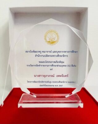 เมื่อวันที่ 12 มี.ค.2568 ที่ จ.ลำปาง ผู้สื่อข่าวรายงานว่า ดร.ยุภาภรณ์ เทพจันทร์ ผู้อำนวยการวิทยาลัยอาชีวศึกษาลำปาง อ.เมืองลำปาง เข้ารับโล่ประกาศเกียรติคุณและวุฒิบัตร รางวัลการจัดทำรายงานการศึกษาส่วนบุคคล (IS) ดีเด่น โครงการพัฒนานักบริหารระดับสูง กระทรวงศึกษาธิการ (นบส.ศธ.) รุ่นที่ 14 ณ ห้องพุทธรักษา อาคารอเนกประสงค์ สถาบันพัฒนาครู คณาจารย์ และบุคลากรทางการศึกษา สำนักงานปลัดกระทรวงศึกษาธิการ อ.สามพราน จ.นครปฐม