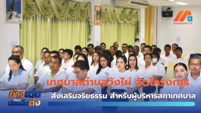 ชุมพรเทศบาลตำบลวังไผ่ จัดโครงการส่งเสริมจริยธรรม สำหรับผู้บริหารสมาชิกสภาเทศบาล พนักงานเทศบาล ลูกจ้างประจำและพนักงานจ้างฯ วันนี้(13 มีค. 68) เวลา 9.00 น. ณ ห้องประชุม 1 ชั้น 3 เทศบาลตำบลวังไผ่ ต. วังไผ่ อ. เมือง จ. ชุมพร นายประกอบ มั่งคั่ง ผอ. ปปช. จ.ชุมพร เป็นประธานเปิด โครงการส่งเสริมคุณธรรม จริยธรรม สำหรับผู้บริหารสมาชิกสภาเทศบาล พนักงานเทศบาล ลูกจ้างประจำและพนักงานจ้าง ประจำงบประมาณ พ.ศ. 2568 โดยมี นางพันทิพย์ เอี้ยวสกุล ประธานชมรมสตรองฯ จ.ชุมพร พร้อมด้วย นางชุลี บรรเทิง รองนายกเทศมนตรีตำบลวังไผ่ นางพรพณา ภิญโญศาสตร์ ปลัดเทศบาล ตลอดจน
