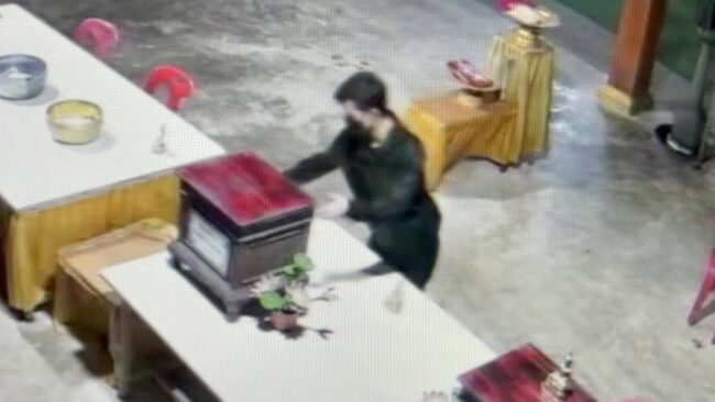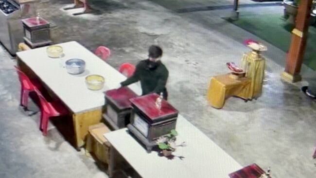ปทุมธานี/กล้องวงจรปิดจับภาพโจรใจบาปบุกเดี่ยวงัดตู้บริจาค 16 ใบ ได้เงินสดไปกว่า 3 หมื่นบาท เมื่อเวลา 03.00 น. วันที่ 13 มี.ค. 68 พ.ต.ท.ทัศนะ อุดมพร สารวัตร(สอบสวน) สภ.คูคต ได้รับแจ้งจากเจ้าหน้าที่วัดโพสพผลเจริญ ต.คูคต อ.ลำลูกกา จ.ปทุมธานี ว่ามีคนร้ายเข้ามางัดตู้บริจาคของวัดไปจำนวน 16 ตู้ ขอให้เจ้าหน้าที่เข้ามาตรวจสอบด้วย หลังรับแจ้งจึงเดินทางไปตรวจสอบที่เกิดเหตุ พร้อมด้วย พ.ต.อ.กานตภณ วรรณา ผกก.สภ.คูคต เจ้าหน้าที่ตำรวจชุดสืบสวน จำนวนหนึ่งในที่เกิดเหตุ ภายในวัดบริเวณจุดทำบุญ พบว่ามีตู้รับบริจาคต่างๆ วางกระจัดกระจายกันอยู่จำนวน 16 ตู้ คนร้ายได้ยกตู้บริจาคมาวางไว้ที่ศาลาหน้าพระประธานโดยทุกตู้ถูกงัดเอาเงินออกไปจนหมด เหลือเพียงเศษเงินเล็กน้อย เจ้าหน้าที่ตำรวจจึงได้กันพื้นที่เกิดเหตุ เพื่อรอเจ้าหน้าที่ตำรวจพิสูจน์หลักฐาน 1 เข้ามาเก็บร่องรอยลายนิวมือแฝงของคนร้าย