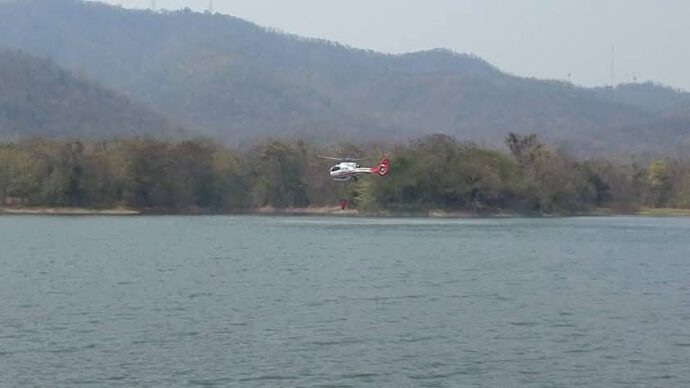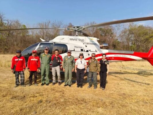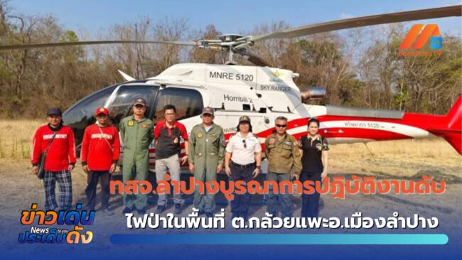 ทั้งนี้สำนักงาน ทสจ.ลำปาง ในฐานนะฝ่ายเลขาฯ ได้พิจารณาร่วมกับ หน่วยงานภาคสนาม เนื่องจาก พื้นที่ดังกล่าวเป็นภูเขาสูงชัน มีเชื้อเพลิงสะสมเป็นจำนวนมาก เจ้าหน้าที่ปฎิบัติงานติดต่อกันหลายวันและเพื่อความปลอดภัยของเจ้าหน้าที่ จึงขอรับสนับสนุนอากาศยานปีกหมุน หมายเลข ทส 5120 จากกระทรวง ทส.บินตรวจแนวไฟ และตักน้ำดับไฟสนับสนุนกำลังภาคพื้นดินได้ทำการตักน้ำดับไฟ 20 เที่ยวบิน ปริมาณน้ำ 10,000 ลิตร เจ้าหน้าที่ภาคพื้นสามารถควบคุมไฟให้อยู่ในวงจำกัดเรียบร้อยแล้ว.