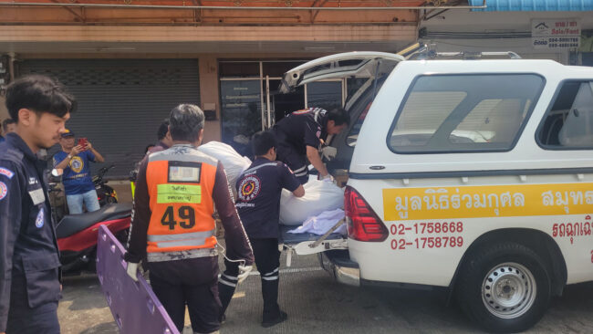เบื้องต้นเจ้าหน้าที่ ได้ตรวจสอบที่เกิดเหตุ ถ่ายภาพ และลงบันทึกไว้เป็นหลักฐาน ก่อนมอบร่างผู้เสียชีวิตให้เจ้าหน้าที่มูลนิธิส่งไปชันสูตรโรงพยาบาลสมุทรปราการ เพื่อดำเนินการตามกฎหมายต่อไป