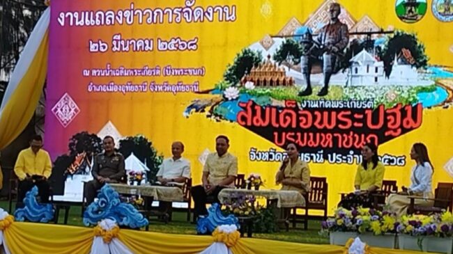 อุทัยธานี แถลงข่าวเตรียมจัดงานเทิดพระเกียรติสมเด็จพระปฐมบรมมหาชนก จังหวัดอุทัยธานี ประจำปี 2568 จัดขึ้นวันที่1 -9 เมษายน 2568 ผู้สื่อข่าวรายงาน ที่บริเวณสวนน้ำเฉลิมพระเกียรติ บึงพระชนก ตำบลเกาะเทโพ อำเภอเมืองอุทัยธานี จังหวัดอุทัยธานี นายธีรพัฒน์ คัชมาตย์ ผู้ว่าราชการจังหวัดอุทัยธานี นายชรินทร์ ไชยะ ปลัดองค์การบริหารส่วนจังหวัดอุทัยธานี พ.ต.อ. ประเสริฐ บัวขาว รองผู้บังคับการตำรวจภูธรจังหวัดอุทัยธานี