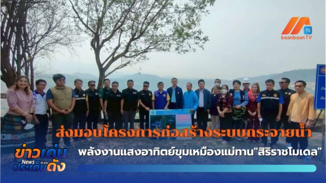 ลำปาง – ส่งมอบโครงการก่อสร้างระบบกระจายน้ำด้วยพลังงานแสงอาทิตย์ขุมเหมืองแม่ทาน”สิริราชโมเดล” บรรเทาปัญหาความเดือดร้อนขาดแคลนน้ำ-อุปโภค เมื่อวันที่ 27 มี.ค.2568 ที่ จ.ลำปาง ผู้สื่อข่าวรายงานว่า สำนักงานทรัพยากรน้ำ ที่ 1 กรมทรัพยากรน้ำ จ.ลำปาง โดยมีนายนิทัศน์ สุดีพงษ์ ผู้อำนวยการสำนักงานทรัพยากรน้ำที่ 1 เป็นประธานพิธีส่งมอบโครงการก่อสร้างระบบกระจายน้ำด้วยพลังงานแสงอาทิตย์ขุมเหมืองแม่ทาน สนับสนุนสิริราชโมเดล ต.สันดอนแก้ว อ.แม่ทะ จ.ลำปาง ให้กับเทศบาลตำบลสิริราช โดยมี นายสิทธิชัย จินดาหลวง อดีตท่านผู้ว่าราชการจังหวัดลำปาง นยเกษม ใจจันทร์ นายอำเภอแม่ทะ นายจรัสฤทธิ์ จันทรสุรินทร์ อดีตสมาชิกสภาผู้แทนราษฎร จ.ลำปาง พรรคเพื่อไทย นายปรีชา สมชัย อดีตนายอำเภอแม่ทะ พ.ต.อ.โอภาส จันทร์ปิง นายกเทศมนตรีตำบลสิริราช หัวหน้าส่วนราชการ เข้าร่วมพิธีส่งมอบโครงการฯ ในครั้งนี้ด้วย