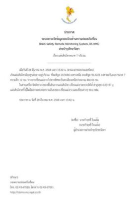เมื่อวันที่ 28 มี.ค.2568 ที่ จ.ลำปาง ผู้สื่อข่าวรายงานว่าเหตุการณ์แผ่นดินไหววันนี้ เวลา 13.32 น. ตามเวลาประเทศไทยเกิดแผ่นดินไหวมีจุดศูนย์กลางอยู่บริเวณ ละติจูด 20.9684 องศาเหนือ ลองติจูด 96.6221 องศาตะวันออก ขนาด 8.2ความลึก 10 กม. ห่างจากเขื่อนแม่จางไปทางทิศตะวันตกเฉียงเหนือประมาณ 446.06 กม. เครื่องวัดอัตราเร่งของพื้นดินจากแผ่นดินไหว เขื่อนแม่จางตรวจวัดได้ค่าสูงสุด 0.00157 g แผ่นดินไหวครั้งนี้ไม่มีผลกระทบต่อความมั่นคงของเขื่อนแม่จาง และเขื่อนต่างๆ ของ กฟผ.แม่เมาะ จ.ลำปาง