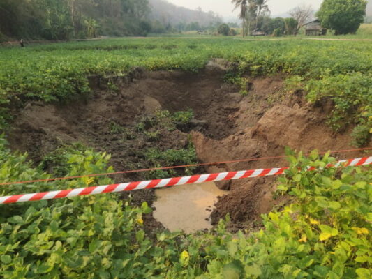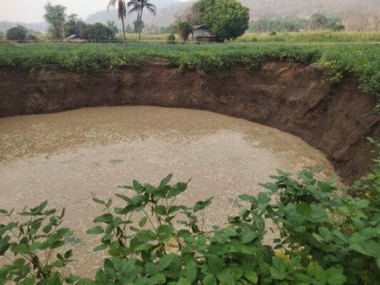 แม่ฮ่องสอนพบแผ่นดินยุบเป็นหลุมขนาดใหญ่หลังเกิดแผ่นดินไหว เมื่อวันที่ 31 มีนาคม 2568 เวลา 10.00 น. นายณรงค์พัชญ์ นาคทรัพย์ นายอำเภอขุนยวม รับแจ้งเหตุพบหลุมยุบหลายขนาด บริเวณพื้นที่การเกษตรบ้านหมู่ที่ 3 แม่สุริน ตำบลขุนยวม อำเภอขุนยวม จังหวัดแม่ฮ่องสอน จึงได้สั่งการให้เจ้าหน้าที่ ร่วมกับองค์การบริหารส่วนตำบลขุนยวม ตรวจสอบ เบื้องต้นพบหลุมยุบในพื้นที่การเกษตร จำนวน 6 หลุม มีขนาดใหญ่ จำนวน 2 หลุม ขนาดเล็กจำนวน 4 หลุม ได้ทำการปิดกั้นเพื่อไม่ให้บุคคลอื่นที่ไม่เกี่ยวข้อง เข้าใกล้พื้นที่เพื่อความปลอดภัย และยังอยู่ระหว่างการสำรวจเพิ่มเติม