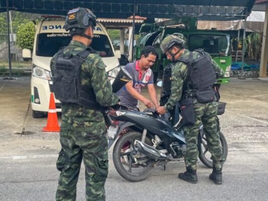 ⏭ On April 3, 2025, the 1st Infantry Battalion Task Force (1st Inf. Bn. TF) deployed personnel to carry out the mission of setting up checkpoints and roadblocks according to the unit’s POP UP plan on main and secondary roads in the area of responsibility, including Bunnangsta District in Yala Province and Yarang District in Pattani Province.