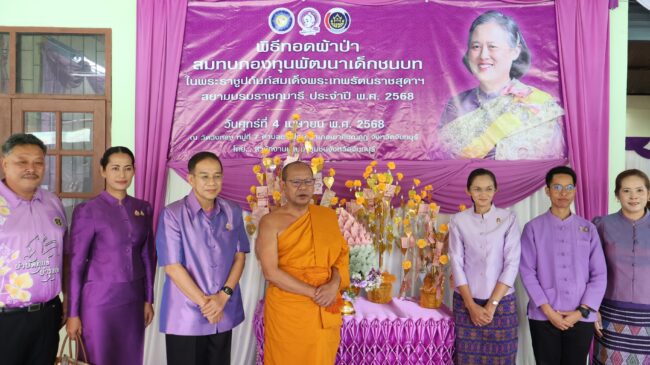 วันนี้ (4 เม.ย. 68) ที่ วัดวังทอง ม.7 ต.ชากไทย อ.เขาคิชฌกูฏ จ.จันทบุรี นายวิสุทธิ์ ประกอบความดี รองผู้ว่าราชการจังหวัดจันทบุรี พร้อมด้วยภริยา เป็นประธานฝ่ายฆราวาสในพิธีทอดผ้าป่าสมทบ “กองทุนพัฒนาเด็กชนบทในพระราชูปถัมภ์ สมเด็จพระเทพรัตนราชสุดาฯ สยามบรมราชกุมารี” ประจำปี 2568 และได้รับความเมตตาจากพระครูจันทรกิจโสภณ เจ้าอาวาสวัดวังทอง เป็นประธานฝ่ายสงฆ์ โดยมีหัวหน้าส่วนราชการ นายอำเภอ ผู้บริหารท้องถิ่น ภาคเอกชน และประชาชนร่วมงานอย่างคับคั่ง
