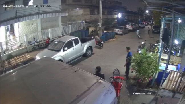 ภาพจากกล้องวงจรปิดของบ้านข้าง ๆ สามารถจับภาพได้ในขณะที่ นายปิยธาร (คนเจ็บ) (เสื้อน้ำเงิน) กำลังยืนพูดคุย เพื่อเคลียร์ปัญหาอะไรกันบางอย่างกับ นายพรพรม (ผู้ก่อเหตุที่ใช้มีดฟันคนเจ็บ) (เสื้อฟ้า) บริเวณหน้าห้องเช่าดังกล่าว แต่ทั้งคู่คาดว่าจะคุยกันไม่ลงตัว ทำให้ นายปิยธาร เปิดฉากสาวหมัดใส่ นายพรพรม เสื้อฟ้า ก่อนจะมีการชกต่อยกันเกิดขึ้น นอกจากทั้งสองคนที่กำลังชกต่อยกันอยู่นั้น มีชายเสื้อดำอีกคนที่คาดว่าน่าจะเป็นเพื่อนกับ นายพรพรม รีบวิ่งเข้าไปช่วยและรุมต่อยจน นายปิยธาร ต้องล่าถอยออกมาก่อนจะถูกชกจนล้มทั้งยืนและถูกชายเสื้อดำเตะซ้ำอีกหลายครั้ง ขณะที่ นายพรพรม พอสู้ไม่ได้ เอามีดดาบซามูไรออกมาจากห้องไปฟันเข้าที่แขนของ นายปิยธาร จนแขนข้างขวาเป็นแผลขนาดใหญ่ หลังเกิดเหตุ ภาพจากกล้องวงจรปิดอีกมุม จะเห็นว่า นายปิยธาร ได้ใช้ผ้าปิดแผลเดินประคองแขนข้างขวาที่ถูกฟันมาขอความช่วยเหลือจากคนที่ใกล้ ๆ ที่เกิดเหตุ