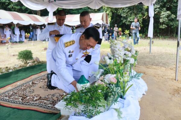 วันที่ 7 เม.ย. 68 ที่ กูโบร์เด๊าะดอฆอ หมู่ที่ 3 ตำบลปูโยะ อำเภอสุไหงโก-ลก จังหวัดนราธิวาส พระบาทสมเด็จพระเจ้าอยู่หัว ทรงพระกรุณาโปรดเกล้าโปรดกระหม่อม ให้ ว่าที่ร้อยตรี ตระกูล โทธรรม ผู้ว่าราชการจังหวัดนราธิวาส เป็นประธานในพิธีพระราชทานดินฝังศพ นายหมู่ใหญ่ มูสำหมัดสาบรี นะสวัน อายุ 41 ปี สมาชิกกองอาสารักษาดินแดนอำเภอสุไหงโก-ลก สังกัดกองร้อยอาสารักษาดินแดนอำเภอสุไหงโก-ลก ที่ 6 ซึ่งเสียชีวิตจากเหตุคนร้ายยิงปะทะและวางระเบิด ขณะปฏิบัติหน้าที่เข้าเวรรักษาการณ์ประตูทางเข้าที่ว่าการอำเภอสุไหงโก-ลก เมื่อช่วงค่ำ ของวันที่ 8 มีนาคม 2568 ที่ผ่านมา