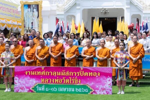 ขึ้นจากแพท่าน้ำประดิษฐาน ณ หน้าพระอุโบสถ ซึ่งได้มีความอลังงดงาม บนผืนน้ำของแม่น้ำนครชัยศรี ที่เป็นเอกลักษณ์ของการจัดงานทุกปี ซึ่งบนบกได้มีการแสดงนาฏศิลป์ โรงเรียนวัดไร่ขิง(สุนทรอุทิศ), โรงเรียนวัดไร่ขิงวิทยา และศิลปิน (หน้าลานพระบรมธาตุเจดีย์พระอุบาลีมหามงคล)จากนั้นเจ้าประคุณสมเด็จพระมหารัชมงคลมุนี เจ้าคณะใหญ่หนกลาง กรรมการมหาเถรสมาคม วัดไตรมิตรวิทยาราม วรวิหาร กรุงเทพมหานคร องค์ประธานฝ่ายสงฆ์ ซึ่งมี นางสาวอโรชา นันทมนตรี ผู้ว่าราชการจังหวัดนครปฐม เป็นประธานในพิธีฝ่ายฆราวาส เปิดกรวยถวายราชสักการะหน้าพระบรมฉายาลักษณ์ พระบาทสมเด็จพระเจ้าอยู่หัว เจ้าประคุณสมเด็จพระมหารัชมงคลมุนี และกล่าวสัมโมทนียกถา เปิดงานเทศกาลนมัสการปิดทองหลวงพ่อวัดไร่ขิง ประจำปี 2568