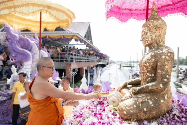นครปฐม070468อลังการเหนือผืนแม่น้ำท่าจีน แห่หลวงพ่อวัดไร่ขิง เปิดงานประจำปี 68 สุดยิ่งใหญ่ เปิดงาน เทศกาลนมัสการปิดทองหลวงพ่อวัดไร่ขิง ประจำปี 2568 แห่งหลวงพ่อวัดไร่ขิงเหนือผืนน้ำแม่น้ำท่าจีนสุดอลังการ โดยตลอดระยะ 9 วัน 9 คืน คาดประชาชนเรือนแสน เงินไหลเวียนมูลค่ามหาศาล ทำเศรษฐกิจชุมชน คึกคักแน่เมื่อวันที่ 7 เมษายน พ.ศ. 2568 ที่วัดไร่ขิง พระอารามหลวง อำเภอสามพราน จังหวัดนครปฐม ได้มีการจัด พิธีบวงสรวงถวายเครื่องสักการะบูชาองค์หลวงพ่อวัดไร่ชิง และพิธีบำเพ็ญกุศลอุทิศถวายแต่บูรพาจารย์ อดีตเจ้าอาวาส อดีตผู้ช่วยเจ้าอาวาส และผู้ทำคุณประโยชน์ต่อวัดไร่ขิงในอดีต เนื่องในงานเทศกาลนมัสการปิดทองหลวงพ่อวัดไร่ขิง ประจำปี 2568ในพิธีการ ขบวนอัญเชิญหลวงพ่อวัดไร่ขิง (จำลอง) ทางน้ำ จากวัดท่าพูด ขึ้นที่ท่าน้ำหน้าพระอุโบสถวัดไร่ขิง พระอารามหลวง โดยพระธรรมวชิรานุวัตร เจ้าคณะภาค 14 เจ้าอาวาสวัดไร่ขิง พระอารามหลวง พร้อมคณะผู้ช่วยเจ้าอาวาส คณะสงฆ์ ข้าราชการ พ่อค้า ประชาชน ร่วมพิธีอัญเชิญองค์หลวงพ่อวัดไร่ขิง