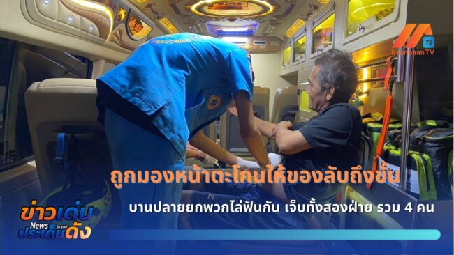ถูกมองหน้าตะโกนให้ของลับถึงขั้นบานปลายยกพวกไล่ฟันกัน เจ็บทั้งสองฝ่าย รวม 4 คน เมื่อเวลา 19.00 น. วันที่ 9 เมษายน 2568 เจ้าหน้าที่ตำรวจ สภ.เมืองสมุทรปราการ ได้รับแจ้งมีเหตุทะเลาะวิวาทกันด้วยอาวุธมีด มีผู้ได้รับบาดเจ็บ ภายในซอยอุดมเดช 7 ซ้าย ตำบลบางเมือง อำเภอเมือง จังหวัดสมุทรปราการ หลังรับแจ้งจึงประสาน เจ้าหน้าที่ฝ่ายสืบสวน เจ้าหน้าที่สายตรวจ พร้อมด้วย เจ้าหน้าที่สมาคมกู้ภัยสมุทรปราการ เดินทางตรวจสอบที่เกิดเหตุในที่เกิดเหตุอยู่บริเวณหน้า อพาร์ทเม้นท์ภายในซอยดังกล่าว พบ นายสมพงษ์ จันทร์มงคล อายุ 59 ปี มีแผลฉีกขาดเล็กน้อยที่ท้องและมือ เจ้าหน้าที่ให้การช่วยเหลือปฐมพยาบาลเบื้องต้น ก่อนนำส่งโรงพยาบาลสมุทรปราการ จากการสอบถามทราบว่ามีผู้ได้รับบาดเจ็บอีกทั้งหมด 3 ราย ถูกนำส่งโรงพยาบาลไปก่อนหน้าแล้ว ในที่เกิดเหตุยังพบกองหยดเลือดกระจายเต็มพื้นถนนจากการสอบถาม นายสมพงษ์ (เสื้อดำ) ผู้ได้รับบาดเจ็บ ซึ่งเป็นพ่อของ นายต้อม บอกว่า ลูกชายตนมารับลูกทุกวัน ตอนนั้นคู่กรณีถือของอยู่ จังหวะลูกชายตนกลับรถเหมือนจะไปเฉี่ยวเขาแต่ไม่โดน เขาหันมามองหน้า ลูกชายตนโมโหเลยหันไปด่า และเกิดการโต้เถียงกัน ลูกชายตนได้ด่าถึงพ่อ กลุ่มคู่กรณี ได้ถามว่าทำไมต้องด่าถึงพ่อแม่ และได้กรูกันเข้าไปหาลูกชายตนคนเดียว ตอนนั้นตนอยู่ข้างใน เลยเข้าไปเอามีดออกมาเพื่อช่วยลูกชาย และเกิดการชุลมุน จากนั้นลูกชายตนขี่รถกลับไปเอามีดมา กลุ่มคู่กรณีก็ถือมีดกรูเข้าไปหาลูกชายตน ตนเลยเข้าไปในบ้านเพื่อหยิบมีดออกมาอีกรอบหนึ่ง กลุ่มนั้นไล่ตีลูกตนมาจนถึงลาน สองคนไล่ตีลูกบอลเข้าไปในซอย แล้วคนแก่เอามีดมาไล่ฟันตน ตนเลยฟันกลับ ดีที่โดนตรงหน้าแบนไม่ได้ตรงสันคม