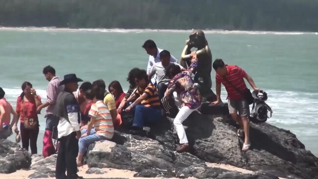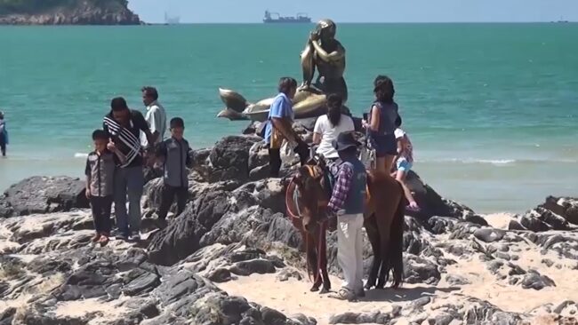 นายปรีชา สถิตย์เรืองศักดิ์ / หาดใหญ่ จ.สงขลา “นางเงือกทองสงขลา” ครบ 59 ปี สัญลักษณ์แหลมสมิหลา ที่ผ่านแดด ผ่านฝน ผ่านมรสุม อยู่คู่เมืองสงขลามาอย่างยาวนาน ยังคงงดงามไม่เปลี่ยน “นางเงือกทองสงขลา” ที่โขดหินธรรมชาติชายหาดแหลมสมิหลา เขตเทศบาลนครสงขลา อ.เมือง จ.สงขลา วันที่ 1 เมษายน 2568 ที่ผ่านมา มีอายุครบ 59 ปีย่างเข้าปีที่60 ของนางเงือกทองสงขลา หลังจากที่เริ่มเปิดอย่างเป็นทางการเมื่อวันที่ 1 เมษายน 2509 ของรูปปั้นบรอนซ์ รมดำ”นางเงือกทอง”สงขลา สํญญลักษณ์แหลมสมิหลาของเมืองสงขลา ที่โดดเด่นและเป็นที่รู้จักของคนในประเทศมาช้านาน รวมทั้งชาวต่างประเทศ(โดยเฉพาะประเทศเพื่อนบ้านชาวมาเลเซีย และสิงคโปร์) มีผู้คนทั้งชาวไทยและชาวต่างประเทศ หลายล้านคน เคยได้มาถ่ายรูปกับนางเงือกทองสงขลา ที่นั่งอยู่บนโขดหินธรรมชาติ บริเวณแหลมสมิหลาที่มีฉากหลังเป็นเกาะหนู เกาะแมว สัญญลักษณ์ทางธรรมชาติของเมืองสงขลารูปปั้น นางเงือกทอง ตามประวัติสร้างขึ้นเมื่อปี พ.ศ. 2509 โดยความคิดริเริ่มของ นายชาญ กาญจนาคพันธุ์ ปลัดจังหวัดสงขลา เมื่อครั้งดำรงตำแหน่งนายกเทศมนตรีนครสงขลา ในสมัยนั้น