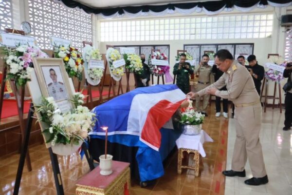 รองผู้ว่าฯ นราธิวาส ร่วมเคารพศพ รองสารวัตร (สอบสวน)ตำรวจภูธรจังหวัดนราธิวาส ที่เสียชีวิตขณะปฏิบัติหน้าที่ จากเหตุการณ์ความไม่สงบในพื้นที่อำเภอสุไหงปาดี