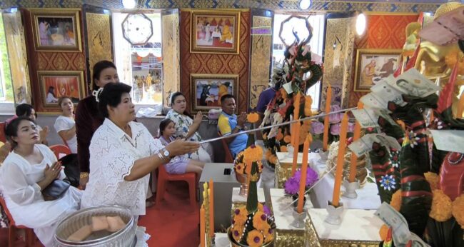 สวดนพเคราะห์ เสริมสิริมงคล เสริมดวง เสริมทรัพย์ เสริมโชคลาภ หน้าที่การงาน ตั้งแต่เวลา 15 .15 น. ถึง 17 .15 น. โดยมีนักท่องเที่ยวและประชาชนเข้าร่วมในพิธีจำนวนมากวัดธรรมปัญญาเป็นวัดเก่าแก่อายุเกิน 100 ปี มีหลวงพ่อเสาร์ 5 พระประธานในอุโบสถ ความพิเศษของโบสถ์ที่ชาวบ้านนิยมมาทำบุญ คือมีบ่อน้ำอยู่ใต้โบสถ์เป็นบ่อน้ำที่ไม่แห้ง และใครที่ศรัทธาในเรื่องพระพุทธศาสนามาที่วัดธรรมปัญญามีลอดโบสถ์ ไหว้พระทำบุญ โดยเฉพาะหลวงพ่อเสาร์ 5 พระประธานภายในอุโบสถ์ที่ใครๆ ก็สามารถมาสักการะกราบไหว้บูชาได้ทุกวันตลอด 24 ชั่วโมง