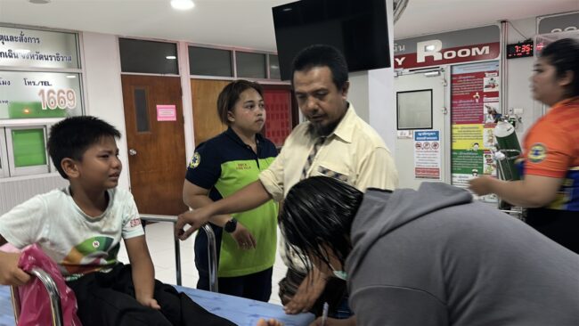 ชาวบ้านและรถยนต์เจ้าหน้าที่ตำรวจ ลำลียงส่งรักษาที่โรงพยาบาลนราธิวาสราชนครินทร์ พร้อมทั้งได้สั่งการให้เจ้าหน้าที่ทำการปิดกั้นการจราจร เพื่อขอสนับสนุนเจ้าหน้าที่ วี.โอ.ดี.และเจ้าหน้าที่ตรวจพิสูจน์หลักฐาน เข้าตรวจสอบในวันพรุ่งนี้จากการสอบถามพยานบุคคลในที่เกิดเหตุ ทราบว่า ก่อนเกิดเหตุได้มีคนร้ายจำนวน 1 คน ขี่รถ จยย.แบบพ่วงโยภายในรถไดแอบซุกซ่อนวัตถุระเบิดมาด้วย และได้จอดรถ จยย.ข้างกำแพงรั้วด้านหลังแฟลตของเจ้าหน้าที่ตำรวจ และในระหว่างนั้นได้มีเด็กชายมุสลิมจำนวนหลายคน เดินเป็นกลุ่มเพื่อดินทางไปเรียนอัลกุรอ่าน คนร้ายเมื่อจอดรถ จยย.เห็นเด็กเดินผ่านจึงได้พยายามไล่เด็กออกห่าง แต่ด้วยความเป็นเด็กสงสัยเดินอยู่ดีๆทำให้จึงพยายามไล่ ทำให้เด็กเหล่านั้นเบิกเฉย คนร้ายเห็นดังนั้นจึงอาศัยความชุนละมุนวิ่งหายไป