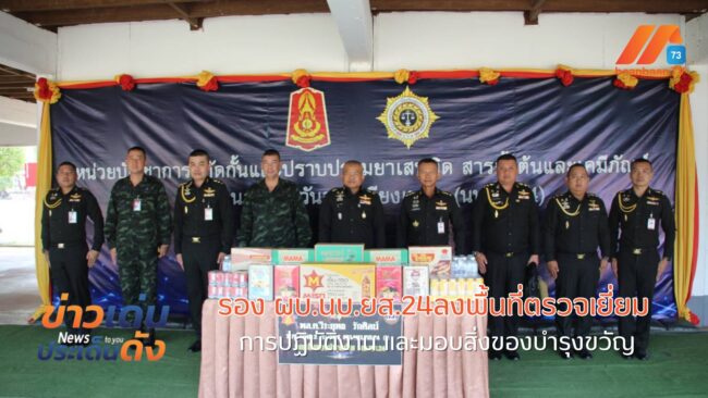 นครพนม -รอง มทภ.2 (1)/รอง ผบ.นบ.ยส.24 (1) ลงพื้นที่ตรวจเยี่ยมการปฏิบัติงาน และมอบสิ่งของบำรุงขวัญ วันที่ 21 เมษายน 2568 เวลา 0945 ที่ค่ายพระยอดเมืองขวาง ตำบลกุรุคุ อำเภอเมือง จังหวัดนครพนม พลตรีวีระยุทธ รักศิลป์ รองแม่ทัพภาคที่ 2/ รองผู้บัญชาการหน่วยบัญชาการสกัดกั้นและปราบปรามยาเสพติดสารตั้งต้น และเคมีภัณฑ์ชายแดนภาคตะวันออกเฉียงเหนือ และคณะ ลงพื้นที่ติดตามการปฏิบัติงานในพื้นที่ จังหวัดนครพนม ตรวจเยี่ยมหน่วยบัญชาการสกัดกั้นและปราบปรามยาเสพติดสารตั้งต้น และเคมีภัณฑ์ชายแดนภาคตะวันออกเฉียงเหนือ รับฟังบรรยายสรุปสถิติและการปฏิบัติที่สำคัญแต่ละมาตรการตั้งแต่ 1 ตุลาคม 2567 ถึง ปัจจุบัน ตัวชี้วัดประสิทธิภาพการแก้ไขปัญหายาเสพติดในพื้นที่เป้าหมาย แนวโน้มสถานการณ์ยาเสพติดในห้วงต่อไป แผนการปฏิบัติในห้วงต่อไปของหน่วย พร้อมทั้งมอบนโยบาย ข้อสั่งการ และข้อเน้นย้ำ แนวทางการปฏิบัติงาน รวมถึงรับทราบปัญหาข้อขัดข้องต่างๆ