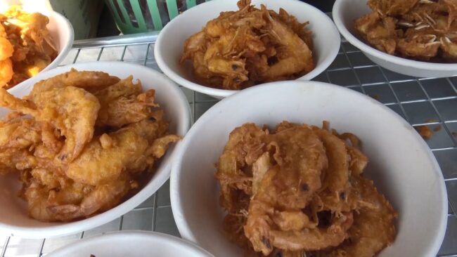 กุ้งทอดกรอบแม่ค้ารถเข็นช่วงหน้าร้อนขายดี นักท่องเที่ยวชาวมาเลเซียชอบกินแห่ซื้อ ถ้วยละ 50 บาท กินกันร้อนๆ กุ้งกรอบอร่อยวันเสาร์วันอาทิตย์นักท่องเที่ยวเยอะ ทำเงินวันละ 5,000 -6,000 บาท ส่วนวันธรรมดาอยู่ที่ 2,000 – 3,000 บาทนับเป็นรายได้ที่ดี นางวรรณดี จันทร์จำรัส แม่ค้ารถเข็นขายอาหารทะเลทอดกรอบ จอดขายอยู่บริเวณริมถนนเยื้องร้านสะดวกซื้อเซเว่นฯแหลมสมิหลาสงขลา ออกขายตั้งแต่เวลา 09.00 น. ถึง 18.00 น. โดยมีลูกสาวและหลานสาวมาช่วยช่วงปิดเทอม ช่วงหน้าร้อนกุ้งทอดกรอบจะขายดีมาก ถ้วยละ 50 บาท โดยใช้กุ้งขาว นักท่องเที่ยวชาวมาเลเซียชอบกินแห่ซื้อคนละหลายๆถ้วย กินกันร้อนๆ กุ้งกรอบอร่อย