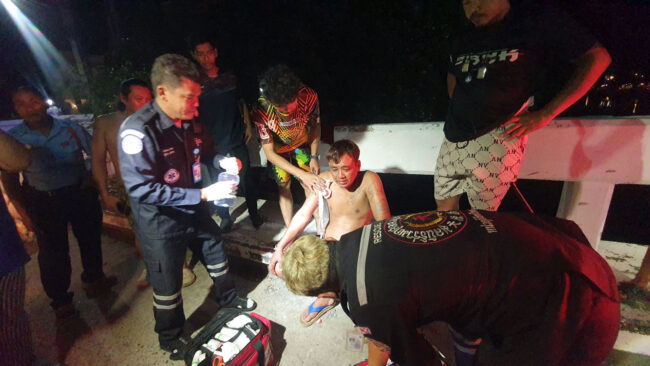 เมื่อเวลา 21.50 น. วันที่ 22 เมษายน 2568 เจ้าหน้าที่ตำรวจ สภ.เมืองสมุทรปราการ ได้รับแจ้งมีเหตุทะเลาะวิวาท มีผู้ได้รับบาดเจ็บ ที่บ้านริมคลองชลประทาน ข้างซอยเทศบาลบางปู 59/3 (บ้านสิรินทร์) ตำบลท้ายบ้านใหม่ อำเภอเมือง จังหวัดสมุทรปราการ หลังรับแจ้งจึงพร้อมด้วยเจ้าหน้าที่มูลนิธิร่วมกุศลสมุทรปราการ เดินทางตรวจสอบที่เกิดเหตุ