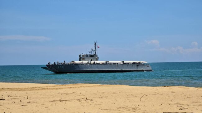ด้วยเรือลำเลียง จากเรือหลวงมันใน (LCU) และ เรือลำเลียงพลขนาดกลาง (LCM) เพื่อลำเลียงอาวุธ