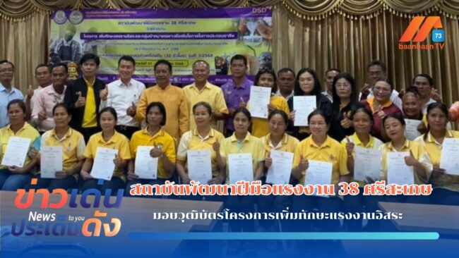 ศรีสะเกษ / สถาบันพัฒนาฝีมือแรงงาน 38 ศรีสะเกษ มอบวุฒิบัตรโครงการเพิ่มทักษะแรงงานอิสระและกลุ่มเป้าหมายเฉพาะเพื่อเพิ่มโอกาส ในการประกอบอาชีพ ประจำปี 2568