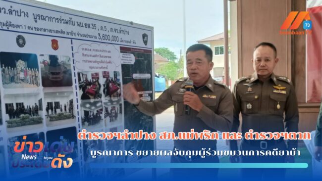 ลำปาง-ตำรวจฯลำปาง สภ.แม่พริก และ ตำรวจฯตาก บูรณาการ ขยายผลจับกุมผู้ร่วมขบวนการคดียาบ้า เมื่อเวลา 13.00 น.วันที่ 28 เม.ย.2568 ที่ จ.ลำปาง ผู้สื่อข่าวรายงานว่า พ.ต.อ.กฤษดา พันธ์เกษม รอง ผบก.ภ.จว.ลำปาง พร้อมด้วย พ.ต.อ.ประสิทธิ์ หล้าสมศรี ผกก.สภ.แม่พริก ร่วมแถลงกรณีตำรวจ ภ.จว. ลำปาง สภ.แม่พริก และ ตำรวจ ภ.จว.ตาก บูรณาการ ขยายผลจับกุมผู้ร่วมขบวนการคดียาบ้า เมื่อเวลา 11.15 น.วันที่ 27 เม.ย.ที่ผ่านมา ตำรวจ สภ.แม่พริก ร่วมกับ กก.สส.ภ.จว.ตาก ได้ร่วมกับจับกุมผู้ต้องหาคือนายชัยชาญ อายุ 26 ปี ชาว ต.แม่นาวาง อ.แม่อาย จ.เชียงใหม่ ตามหมายจับของศาลจังหวัดลำปางที่ จ.192/2568 ลงวันที่ 25 เม.ย.2568