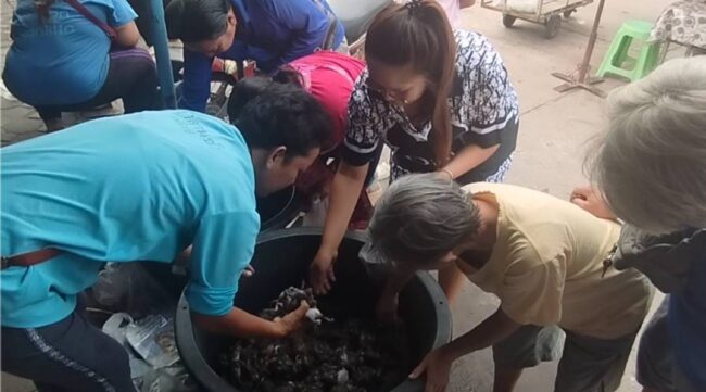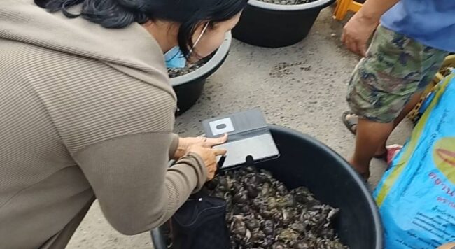 ได้มีชาวบ้านทั้งต่างพื้นที่และนอกพื้นที่รวมถึงต่างจังหวัด ต่างมารอซื้ออึ่งไข่ตั้งแต่ 5:00 น ขณะที่แม่ค้ายังไม่ตั้งร้าน เพื่อมารอเลือกคัดอึ่ง ซึ่งมีหลายไซส์หลายราคา รวมทั้งอึ่งกำลังไข่เต็มท้อง ส่วนราคาอึ่ง ที่คัดไว้แล้ว มีราคาตั้งแต่ 300 ถึง 400 บาท ต่อกิโลกรัม