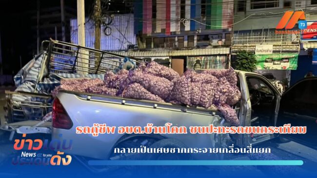 มุกดาหาร -รถกู้ชีพ อบต.บ้านโคก ชนปะทะรถขนกระเทียม กลายเป็นเศษซากกระจายเกลื่อนสี่แยก ธกส.มุกดาหาร เมื่อเวลา 03.15น. ศูนย์รับแจ้งเหตุ 191 สภ.เมืองมุกดาหาร จ.มุกดาหาร ได้รับแจ้งว่ากิดอุบัติเหตุรถยนต์ชนกันอย่างแรงจนทำให้ชิ้นส่วนของรถยนต์และสิ่งของที่บรรทุกมากระจายไปเต็มพื้นที่ถนนชยางกูร ที่บริเวณสี่แยก ธกส.มุกดาหาร เขตเทศบาลเมืองมุกดาหาร จึงได้ประสานขอความช่วยเหลือจากนายอดุลย์ ศิริมันต์ หัวหน้าฝ่ายป้องกันและบรรเทาสาธารณภัยเทศบาลเมืองมุกดาหาร นำกำลังเจ้าหน้าที่และรถกู้ภัยช่วยดำเนินการเก็บ