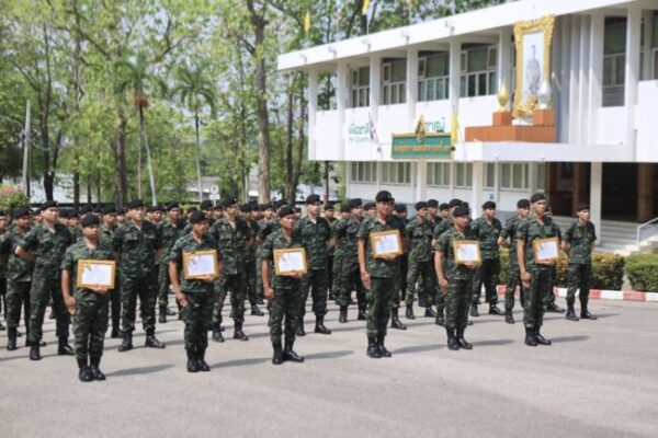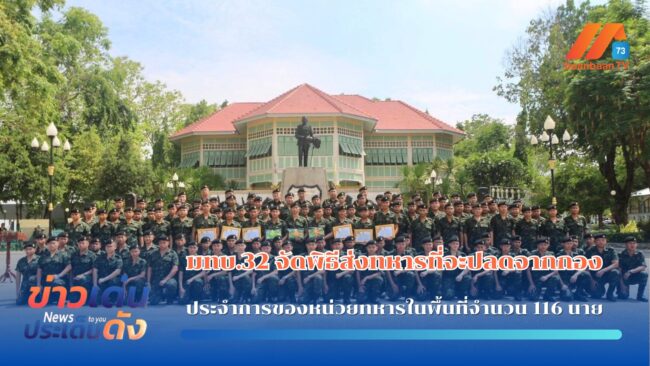 ลำปาง-มทบ.32 จัดพิธีส่งทหารที่จะปลดจากกองประจำการของหน่วยทหารในพื้นที่จำนวน 116 นาย เมื่อเวลา 10.00น.วันที่ 30 เม.ย.2568 ที่ จ.ลำปาง ผู้สื่อข่าวรายงานว่า ณ หน้าอนุสาวรีย์จอมพลมหาอำมาตย์เอกเจ้าพระยาสุรศักดิ์มนตรี พล.ต.วิชาญ ศรีภัทรางกูร ผบ.มทบ.32 เป็นประธานในพิธีส่งทหารกองประจำการที่จะปลดจากกองประจำการของหน่วยทหารในพื้นที่ จ.ลำปาง จำนวน 116 นาย โดยมีคณะผู้บังคับบัญชาและกำลังพลนายทหารสัญญาบัตรร่วมพิธีฯทั้งนี้ ตลอดระยะเวลาในการเข้าประจำการ ทหารได้ทำหน้าที่ตามระเบียบวินัย ได้รับความรู้ ทักษะทางทหาร ภาวะผู้นำ และวิชาชีพต่างๆ ซึ่งสามารถนำไปประยุกต์ใช้ในชีวิตประจำวันทั้งสำหรับตนเอง ครอบครัว และสังคม โดยภูมิใจที่ได้ทำหน้าที่รับใช้ชาติอย่างครบถ้วนสมบูรณ์ ต่อจากนี้จะทำหน้าที่เป็นพลเมืองที่ดี เป็นลูกและหัวหน้าครอบครัวที่มีคุณภาพ
