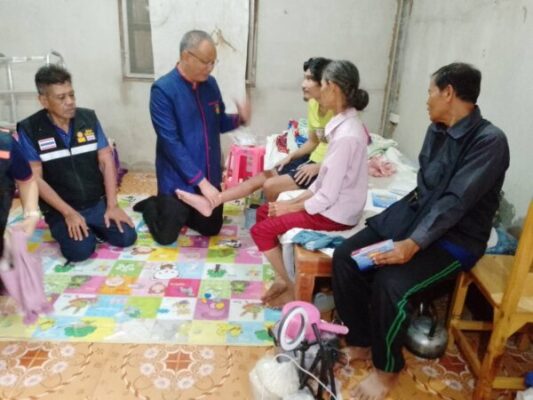 – สำนักงาน คปภ.จังหวัดสุโขทัย แจ้งว่า ผู้ได้รับบาดเจ็บจะได้รับเงินกองทุนกองทุนทดแทนผู้ประสบภัย ช่วยเหลือเรื่องค่ารักษาพยาบาล ประมาณ 3 หมื่นบาท จากการพักรักษาตัวอยู่ที่โรงพยาบาล- สำนักงาน พมจ.จังหวัดสุโขทัย มอบเงินสงเคราะห์ประสบปัญหาทางสังคมกรณีฉุกเฉิน จำนวน 3,000 บาท และจะทำหนังสือไปยัง อบจ.สุโขทัย เพื่อเสนอรายชื่อเป็นผู้ได้รับเงินสงเคราะห์ผู้ป่วยยากไร้- โรงพยาบาลศรีสัชนาลัย โดยการประสานจากสาธารณสุขจังหวัดสุโขทัย จะพิจารณาช่วยเหลือในเรื่องการเดินทางไปรักษาตัวตามนัด โดยจะมีรถไปรับ – ส่ง ผู้ป่วยตามวันนัด- สำนักงานยุติธรรมจังหวัดสุโขทัย แจ้งว่าหากไม่ได้รับความเป็นธรรมในการเยียวยาจากคู่กรณี จะช่วยเหลือเยียวยาตามสิทธิทางกฎหมายภายหลังจากนั้น ได้เดินทางไปยังบ้านของ นายยอดชายรัก สุทธิประพันธ์ เพื่อเยี่ยมให้กำลังใจและชี้แจงในส่วนของการดำเนินเรื่องการให้ความช่วยเหลือเยียวยาของหน่วยงานต่างๆ เพื่อดำเนินการในส่วนที่เกี่ยวข้องในความรับผิดชอบของแต่ละหน่วยงาน ในการบรรเทาความเดือดร้อนและเยียวยาให้แก่ประชาชนทั้งนี้ เพื่อให้การ “บำบัดทุกข์ บำรุงสุข” เกิดขึ้นกับพี่น้องประชาชนอย่างแท้จริง เป็นการขับเคลื่อนโครงการหมู่บ้านยั่งยืน (Sustainable Village) เพื่อเฉลิมพระเกียรติพระบาทสมเด็จพระเจ้าอยู่หัว เนื่องในโอกาสมหามงคลเฉลิมพระชนมพรรษา 72 พรรษา ในตัวชี้วัด