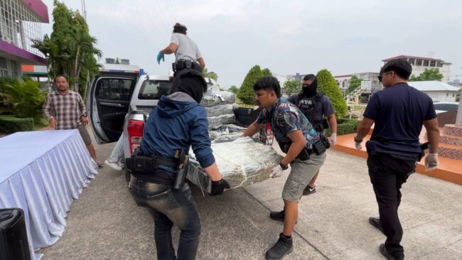 ตชด.ภ.2 รวบ 3 ผู้ต้องหาลักลอบขนยาไอซ์เข้ามาจำหน่ายในกลุ่มจังหวัดกลาง ได้พร้อมของกลางยาไอซ์ 450 กก.มูลค่ารวมกว่า 450 ล้านบาท พบขอแถมเป็นยาอี ลาบูบู้ เมื่อเวลา 13.00น. วันที่ 1 พ.ค.2568 ที่ บก.ตชด.ภ.2 จ.ขอนแก่น พล.ต.ต.กิตติศักดิ์ ปลาทอง ผบก.ตชด.ภ.2 แถลงข่าวผลการจับกุมนายประสบศุข หรือแมน อายุ 23 อยู่บ้านเลขที่ 487/12 ม.1 ต.ในเมือง อ.บ้านไผ่ จ.ขอนแก่น,นายธงธวัช หรือเต้ย อายุ 28 ปี อยู่บ้านเลขที่ 344/33 ม.15 ต.ท่าพระ อ.เมืองขอนแก่น และนายชลันธร หรือเต้ย อายุ 20 ปี อยู่บ้านเลขที่ 104/1 ม.6 ต.ท่าพระ อ.เมือง จ.ขอนแก่น พร้อมของกลางรถยนต์ฮอนด้า ซิตี้สีชาวหมายเลขทะเบียน ขว-7697 ระยอง,รถยนต์โ๖โยต้าวีออส สีขาว หมายเลขทะเบียน 5กผ-2243 กทม.และ รถยนต์ฮอนด้า เอชอาวี หมายเลขทะเบียน 6กฬ-5149 กรุงเทพฯ และยาไอซ์ 450 กก. หลังถูกเจ้าหน้าที่ชุดปฎิบัติการข่าว บก.ตชด.ภ.2 จับกุมตัวได้ขณะลักลอบนำยาไอซ์ดังกล่าวทั้งหมด ผ่านจุดตรวจ ที่ อ.ท่าบ่อ จ.หนองคาย
