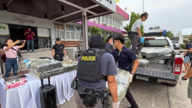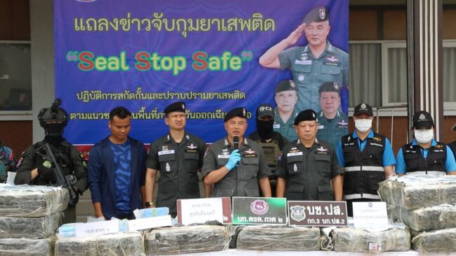 ตชด.ภ.2 รวบ 3 ผู้ต้องหาลักลอบขนยาไอซ์เข้ามาจำหน่ายในกลุ่มจังหวัดกลาง ได้พร้อมของกลางยาไอซ์ 450 กก.มูลค่ารวมกว่า 450 ล้านบาท พบขอแถมเป็นยาอี ลาบูบู้ เมื่อเวลา 13.00น. วันที่ 1 พ.ค.2568 ที่ บก.ตชด.ภ.2 จ.ขอนแก่น พล.ต.ต.กิตติศักดิ์ ปลาทอง ผบก.ตชด.ภ.2 แถลงข่าวผลการจับกุมนายประสบศุข หรือแมน อายุ 23 อยู่บ้านเลขที่ 487/12 ม.1 ต.ในเมือง อ.บ้านไผ่ จ.ขอนแก่น,นายธงธวัช หรือเต้ย อายุ 28 ปี อยู่บ้านเลขที่ 344/33 ม.15 ต.ท่าพระ อ.เมืองขอนแก่น และนายชลันธร หรือเต้ย อายุ 20 ปี อยู่บ้านเลขที่ 104/1 ม.6 ต.ท่าพระ อ.เมือง จ.ขอนแก่น พร้อมของกลางรถยนต์ฮอนด้า ซิตี้สีชาวหมายเลขทะเบียน ขว-7697 ระยอง,รถยนต์โ๖โยต้าวีออส สีขาว หมายเลขทะเบียน 5กผ-2243 กทม.และ รถยนต์ฮอนด้า เอชอาวี หมายเลขทะเบียน 6กฬ-5149 กรุงเทพฯ และยาไอซ์ 450 กก. หลังถูกเจ้าหน้าที่ชุดปฎิบัติการข่าว บก.ตชด.ภ.2 จับกุมตัวได้ขณะลักลอบนำยาไอซ์ดังกล่าวทั้งหมด ผ่านจุดตรวจ ที่ อ.ท่าบ่อ จ.หนองคาย