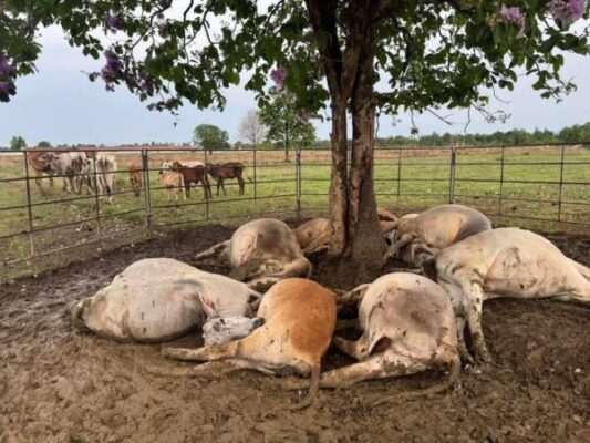 สุโขทัย พายุฝนฟ้าคะนอง ฟ้าผ่าลงกลางทุ่งนาวัวตายทันที 13 ตัวเมื่อช่วงค่ำของวันที่ 30 เมษายน 2568 ที่ผ่านมาได้เกิดพายุฤดูร้อน มีฝนฟ้าคะนองลมพัดแรง ที่อำเภอบ้านด่านลานหอย และ เกิดเหตุฟ้าผ่าวัวของเกษตรกรที่เลี้ยงและกั้นคอกไว้ใต้ต้นอินทนิล กลางทุ่งนา หมู่ที่ 5 ตำบลวังลึก อ.บ้านด่านลานหอย ทำให้วัวตายทันที 13 ตัวจากการลงพื้นที่สอบถามเจ้าของวัวที่ถูกฟ้าผ่าตายในครั้งนี้ทราบว่าเจ้าของวัวคือนาย ปรีชา หล้ามูล อายุ 60 ปี เล่าให้ฟังว่า เมื่อช่วงค่ำ ของวันที่ 30 เมษายน ที่ผ่านมาตนและครอบครัว ได้พักอยู่ที่บ้านพักในหมู่บ้านและผูกวัวไว้ที่ใต้ต้นอิทนินกลางทุ่งนาใกล้บ้าน จำนวน 24 ตัว ได้เกิดพายุฤดูร้อนและฝนฟ้าคะนอง ได้ยินเสียงฟ้าผ่า หลายครั้ง ก็ยังเป็นห่วงวัวทั้ง 24 ตัว ที่อยู่กลางทุ่งนา แต่ก็ไม่ได้ออกไปดูจน