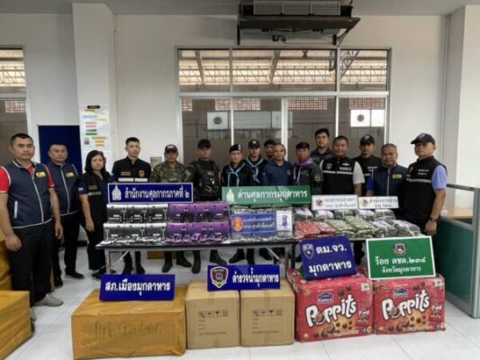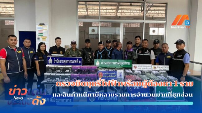 มุกดาหาร ตรวจยึดบุหรี่ไฟฟ้าพร้อมผู้ต้องหา 1 รายมุกดาหาร/เมื่อวันที่ 2 พฤษภาคม 2568 ด่านศุลกากรมุกดาหาร สนธิกำลังหน่วยความมั่นคงในพื้นที่ ประกอบด้วย ร้อยเฉพาะกิจทหารพรานที่ 2105 ด่านตรวจสัตว์ป่ามุกดาหาร ตชด.234 ร่วมกันจับนายสมบัติ โครตสงคราม อายุ 55 ปี บ้านเลขที่ 19 หมู่.13 อำเภอนิคมคำสร้อย จังหวัดมุกดาหาร พร้อมด้วยสินค้าหนีภาษีหลายรายการจำนวนมากที่ซุกซ่อนมากับรถโดยสารประจำทาง ระหว่างประเทศ 99 มุกดาหาร – สวันนะเขต ทะเบียน 10-0716 มุกดาหาร ภายหลังเจ้าหน้าที่ได้รับแจ้งว่า จะมีขบวนการบรรทุกสินค้าหนีภาษี มาฝากรถโดยสารที่จอดอยู่บริเวณหน้าด่านสะพานมิตรภาพไทย-ลาว แห่งที่ 2 (มุกดาหาร – สะหวันนะเขต เจ้าหน้าจึงได้ซุ่มเฝ้าสังเกตุการณ์บริเวณที่ได้รับแจ้งดังกล่าว