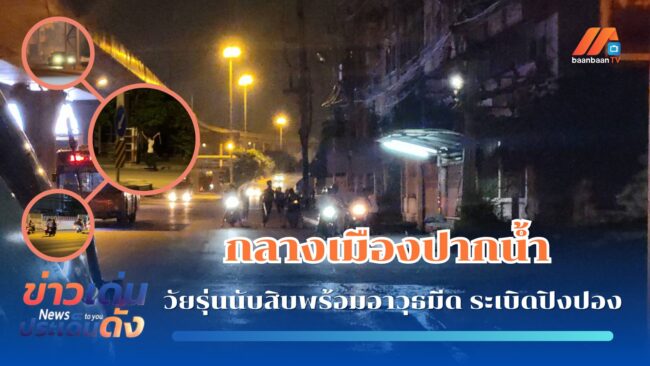 กลางเมืองปากน้ำ วัยรุ่นนับสิบพร้อมอาวุธมีด ระเบิดปิงปอง เปิดฉากลองกำลังกลางถนน ชาวบ้านบอกประจำเลยตรงนี้