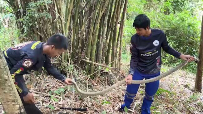 ฤดูจงอางวางไข่ ดุร้าย ฉกใส่มือปราบงู เกือบถึงหน้าอกวันนี้ 4 พฤษภาคม 2568 นายทวีศักดิ์ บุญเศษ , นาย อภิชาติ พรหมสงค์ ,ว่าที่ ร.ต. ไกรวิชญ์ อ่อนมนิล เจ้าหน้าที่ทีมปราบอสรพิษอาสาพิทักษ์งู จ.สงขลา ได้รับแจ้งจากนายสุทธิศักดิ์ แซ่อึ้ง อายุ 46 ปี อยู่บ้านเลขที่ 76 ม.17 ต.นาทวี อ.นาทวี จ.สงขลา ว่ามีงูจงอางมาทำรังและฟักไข่ อยู่ในกอไผ่ในสวนยาง ขอให้ทีมปราบอสรพิษอาสาพิทักษ์งู จ.สงขลา มาช่วยจับงูจงอางให้ด้วย เพราะชาวบ้านในละแวดนั้นต่างผวา เนื่องจากงูวางไข่มีอาการดุร้ายมาก