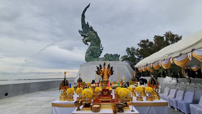 เทศบาลนครสงขลา ทำพิธีบวงสรวงพญานาคพ่นน้ำ มาสคอตของแหลมสนอ่อนแหล่งท่องเที่ยวของจังหวัดสงขลา เพื่อความเป็นสิริมงคลแก่เมืองสงขลา หลังได้ทำการก่อสร้างปรับปรุงเสร็จเรียบร้อยแล้ว โดยมีประชาชน เข้าร่วมพิธีเป็นจำนวนมากวันนี้ 4 พฤษภาคม 2568 เวลา 9:30 น ที่บริเวณลานพญานาคพ่นน้ำ ปลายแหลมสนอ่อน เขตเทศบาลนครสงขลา อำเภอเมือง จังหวัดสงขลา ทางเทศบาลนครสงขลา ได้จัดพิธีบวงสรวงพญานาคพ่นน้ำ มาสคอตของแหลมสนอ่อนแหล่งท่องเที่ยวของจังหวัดสงขลา เพื่อความเป็นสิริมงคลแก่เมืองสงขลา หลังปิดพื้นที่มานานเกือบ 6 ปี ขณะนี้ได้ทำการ ก่อสร้างปรับปรุงพื้นที่เสร็จเรียบร้อยแล้ว จึงได้ทำการจัดพิธีบวงสรวงพญานาคพ่นน้ำขึ้นในวันนี้ โดยมี นายโชตินรินทร์ เกิดสม ผู้ว่าราชการจังหวัดสงขลา เป็นประธานในพิธี มีนายวันชัย ปริญญาศิริ นายกเทศมนตรีนครสงขลา คณะผู้บริหาร เทศบาลนครสงขลา หัวหน้าส่วนราชการและประชาชนชาวสงขลา เข้าร่วมพิธีเป็นจำนวนมาก