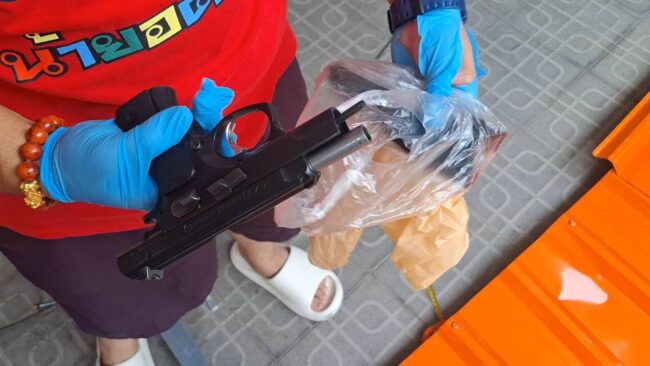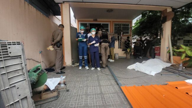 อดีตผู้ใหญ่บ้านหัวร้อนชักปืนกระหน่ำยิงสองผัวเมียหลานแท้ๆย่านสำโรงใต้เมื่อเวลา 12.00 น. วันที่ 4 พฤษภาคม 2568 ศูนย์กู้ชีพปราการได้รับแจ้งจากสายด่วน 1669 ว่ามีเหตุทำร้ายร่างกายกันด้วยอาวุธปืน เหตุเกิดที่หน้าบ้านพักหลังหนึ่งภายในซอย บุญถนอม ตำบลสำโรง อำเภอพระประแดง จังหวัดสมุทรปราการ จึงประสานเจ้าหน้าที่ตำรวจ สภ.สำโรงใต้ และเจ้าหน้าที่มูลนิธิร่วมกตัญญูไปตรวจสอบพอเจ้าหน้าที่เดินทางไปถึงที่หน้าบ้านหลังดังซึ่งเป็นบ้านปูนสองชั้นปลูกติดกันมีรั้วกำแพงปูนกั้นระหว่างบ้าน โดยข้างกำแพงรั้วตรงลานจอดรถของบ้านพบร่างของ นาย อำนาท เผือกวัฒนะ อายุ 55 ปี ถูกยิงเข้าที่กลางอกจำนวน ห่างกันเล็กน้อย พบร่างของ นางสุรินทร์ เผือกวัฒนะ อายุ 50 ปี ภรรยาของ นายอำนาท นอนเสียชีวิตมีบาดแผลถูกยิงเข้าที่ศีรษะอย่างน้อย 2 นัด โดยมีปลอกกระสุนขนาด 9 ม.ม. ตกเกลื่อนพื้นจำนวน 7 ปลอก และพบอาวุธปืนกึ่งออโต้ขนาด 9 ม.ม. ตกอยู่ 1 กระบอก เจ้าหน้าที่จึงรวบรวมเก็บทั้งหมดเอาไว้เป็นหลักฐาน จากนั้นจึงปิดกั้นพื้นที่เพื่อให้เจ้าหน้าที่พิสูจน์หลักฐานและผู้เกี่ยวข้องตรวจสอบและเก็บหลักฐานในที่เกิดเหตุ ส่วนผู้ก่อเหตุคือ นาย มานิตย์ เผือกวัฒนะ อายุประมาณ 72 ปี เป็นอดีตผู้ใหญ่บ้านหมู่ที่ 5 ตำบลสำโรง ซึ่งหลังเกิดเหตุได้ขับ รถเก๋ง ยี่ห้อ โตโยต้า หลบหนี โดยตำรวจภูธรจังหวัดสมุทรปราการได้วิทยุสกัดจับแต่ยังไร้วี่แววจากการสอบถามข้อมูลทางญาติผู้ตายบอกให้ข้อมูลแต่ปฏิเสธให้สัมภาษณ์ โดยบอกว่า ผู้ก่อเหตุกับผู้ตายเป็นอาหลานกัน และเป็นญาติพี่น้องกัน ก่อนหน้านี้ ซึ่งมีบ้านรั้วติดกัน ก่อนหน้านี้ ช่วงต้นเดือนเมษายนปี 2567 ที่ผ่านมา คุณยายอายุ 80 ปี ก็เคยถูก นาย มานิตย์ บุกเข้ามาใช้ชะแลงฟาดที่ศีรษะจนได้รับบาดเจ็บและเป็นคดีความอยู่ในชั้นศาลมาแล้ว จนมาล่าสุดมาเกิดเหตุซ้ำอีกครั้ง